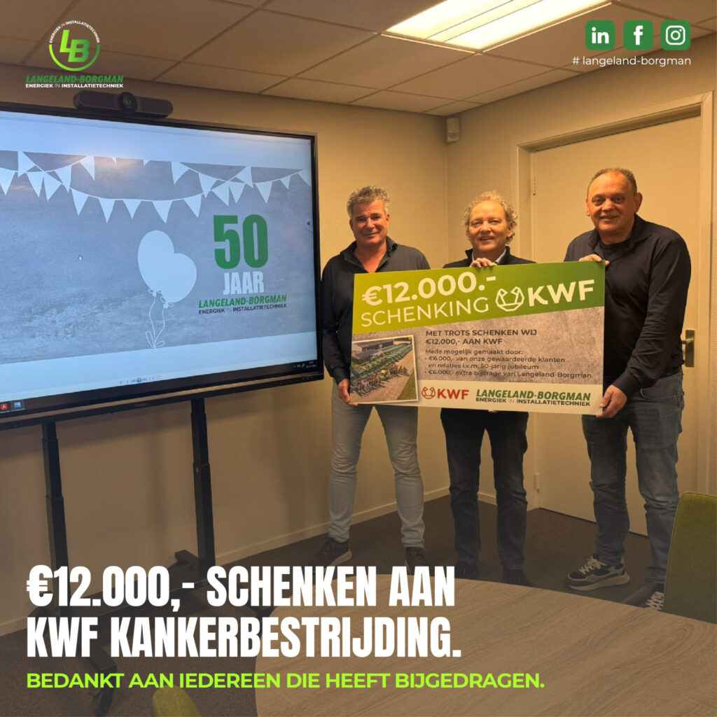 Langeland-Borgman verdubbelt dit bedrag, waardoor we in totaal €12.000,- schenken aan KWF Kankerbestrijding.