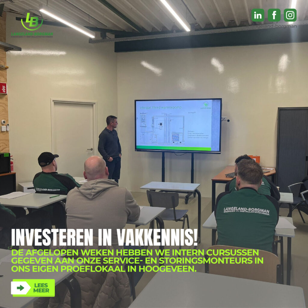 In de installatietechniek staat de ontwikkeling nooit stil. Nieuwe technieken, duurzame oplossingen en steeds complexere installaties vragen om actuele kennis en vakmanschap. Daarom investeren wij bij Langeland-Borgman continu in het opleiden van onze medewerkers.
