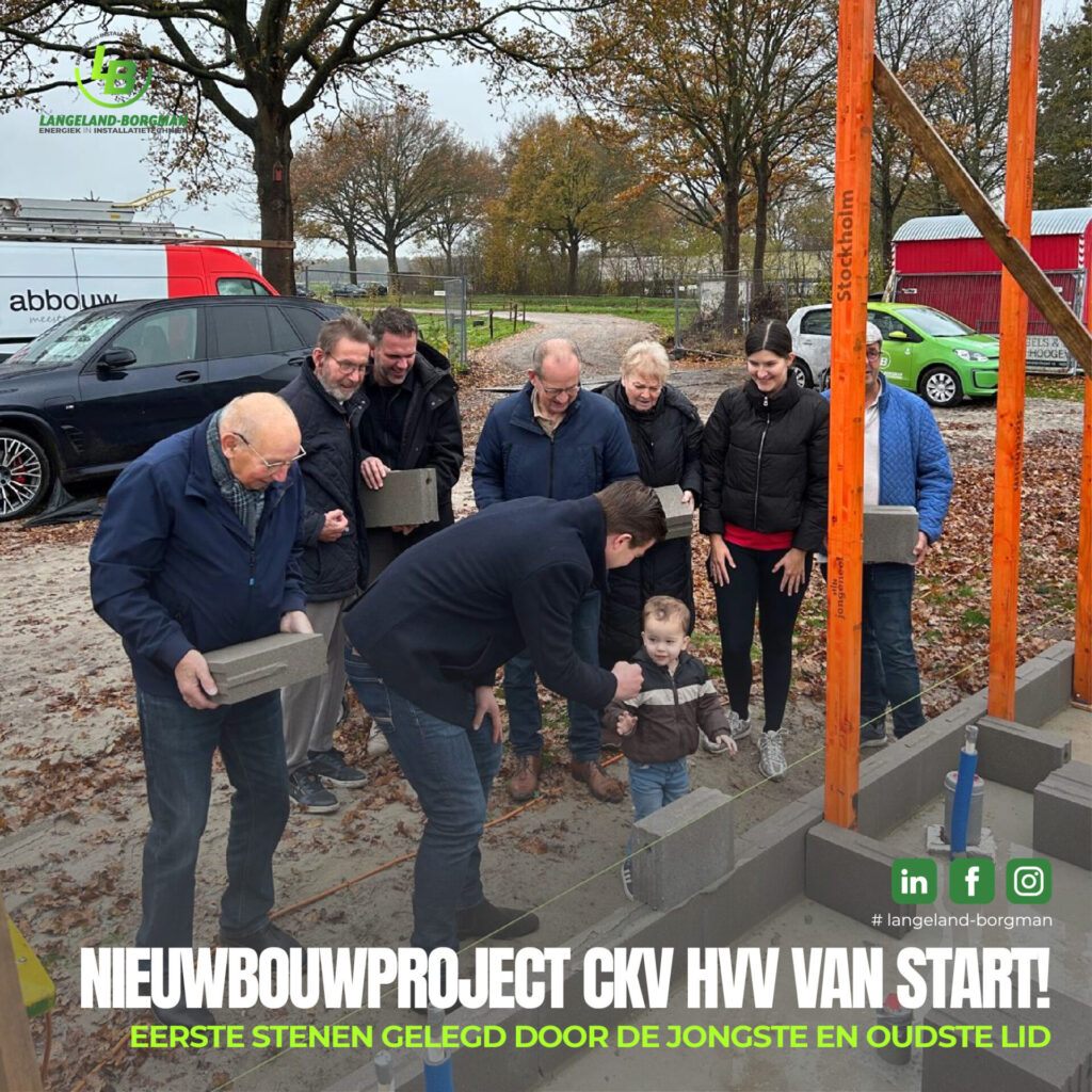 Vandaag zijn de eerste stenen gelegd door de jongste en oudste lid van de korfbalvereniging en daarmee is het startschot gegeven voor de bouw van nieuwe kleedruimtes bij Korfbalvereniging CKV HVV in Hoogeveen.