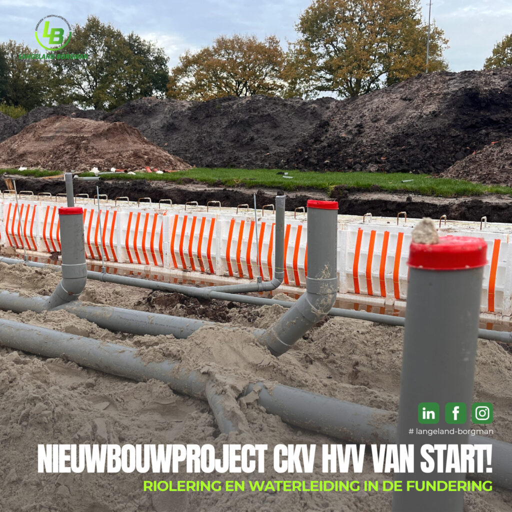 Wij hebben de riolering en waterleiding aangebracht in de fundering.